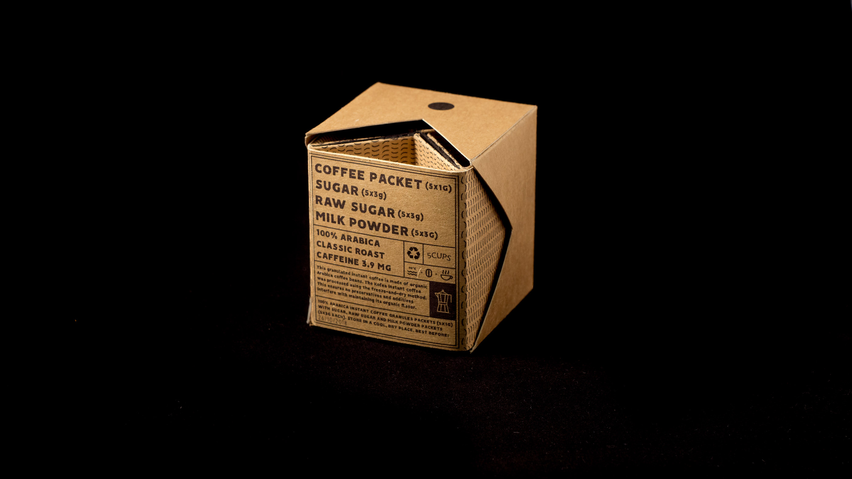This versatile coffee packaging box serves the purpose of storing, carrying, and serving coffee packets. It includes instant coffee, white sugar, raw sugar, and milk powder packets, allowing users to customize their coffee flavor. Notably, this project has received recognition, being featured in two categories on Behance, on Design&Paper, and the book 'Bon Appetite,' a compilation of food packaging designs worldwide.