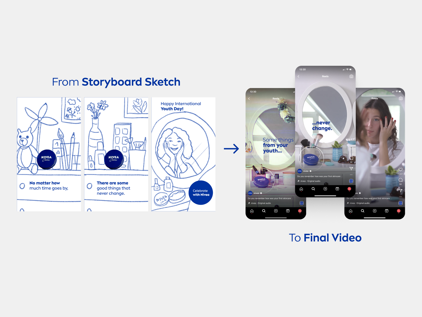 At Publicis Groupe, I had the opportunity to work on Nivea's global Instagram page, actively contributing to idea generation, storyboarding, production, and post-production phases. Together with the team, we created engaging reels, carousels, and stories that resonated with the client and captivated users, boosting brand awareness and interaction.